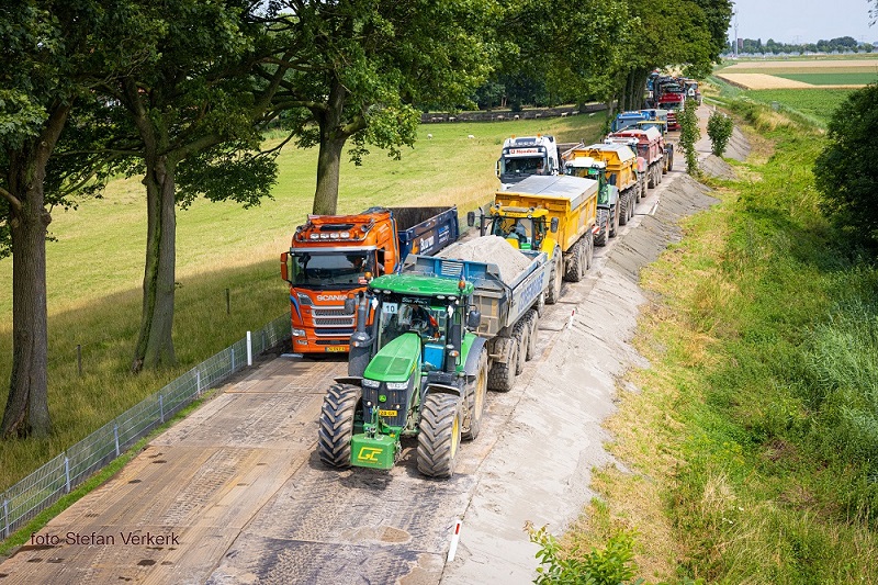 Het afvoeren van klei en aanvoeren van zand is een erg grote logistieke klus die dag en nacht doorgaat en 16 dagen duurt.